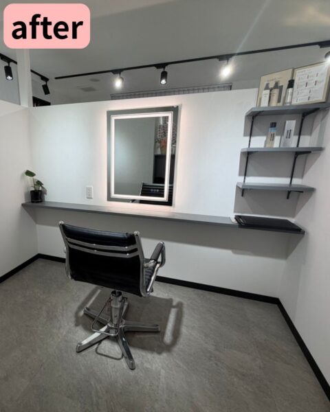 カットスペースについては話題の女優ミラー(LEDミラー)を取り付けて、高級感が増しました。